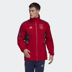 A waterproof Ajax Amsterdam jacket made with recycled materials.