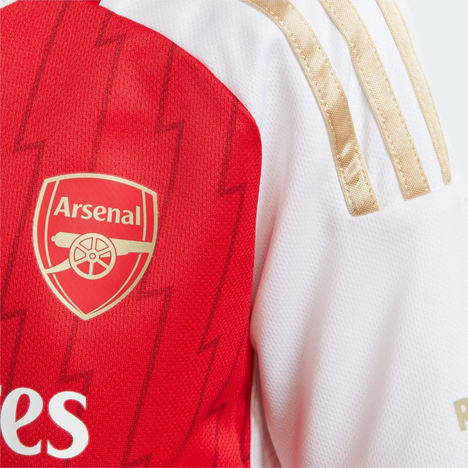 An Arsenal home kit created for young fans, made in part with recycled materials.