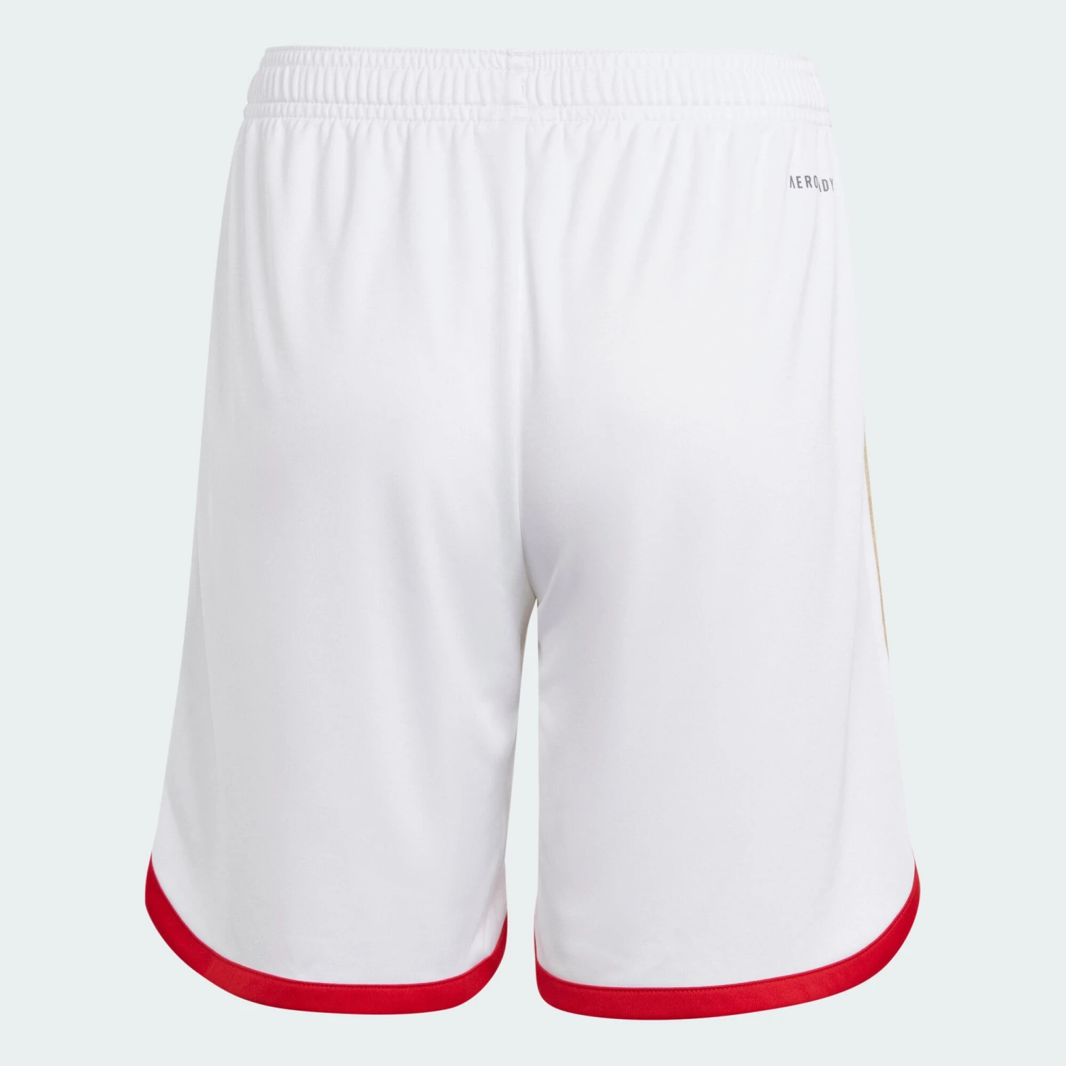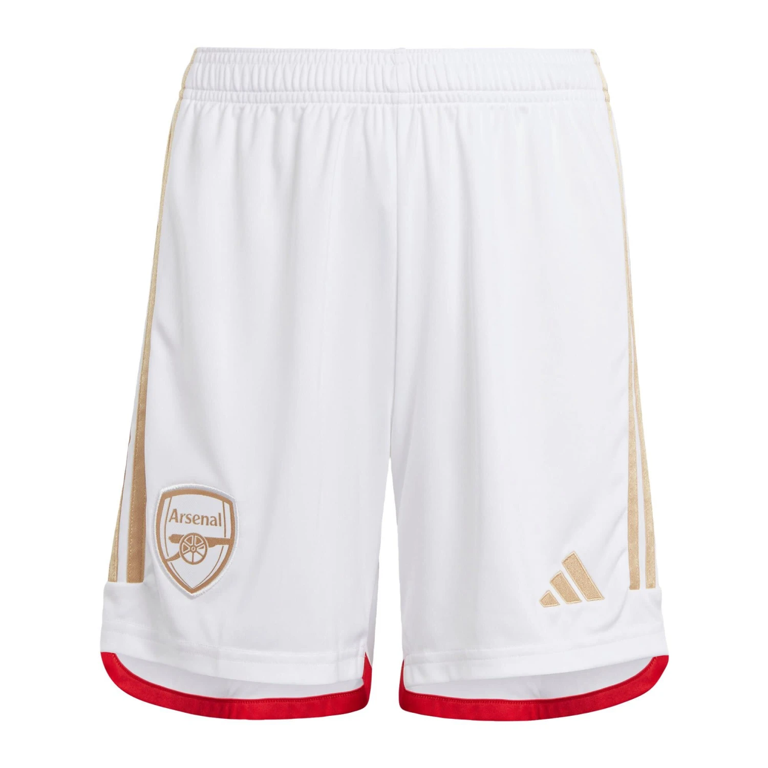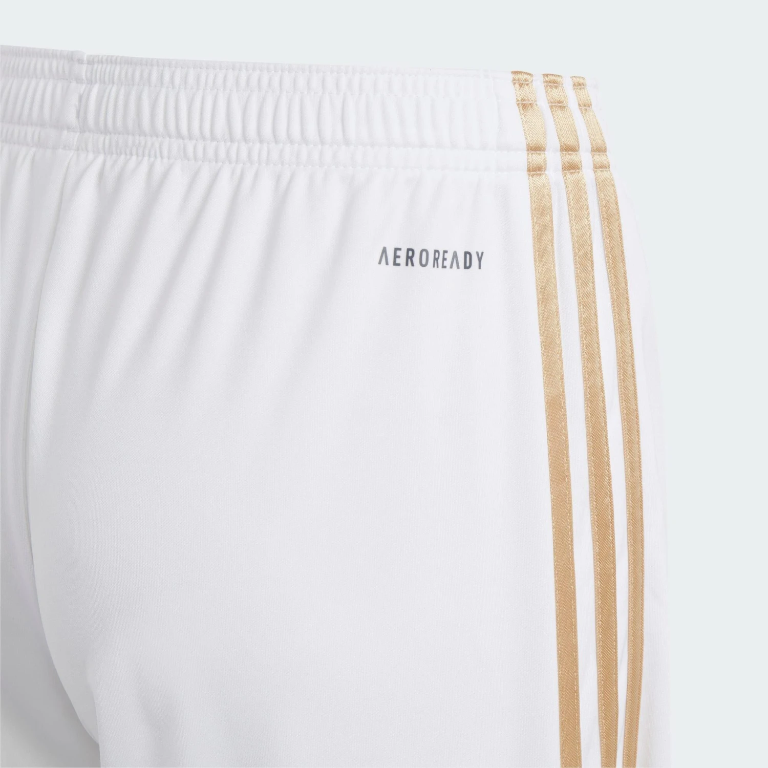 Part of a kit that pays tribute to the 20th anniversary of Arsenal’s “invincibles” season. Sharing the jersey’s golden details, these juniors’ adidas football shorts are designed to keep fans comfortable with soft, smooth fabric and moisture-wicking AEROREADY. A woven badge ensures you celebrate in Gunners style.Made with 100% recycled materials, this product represents just one of adidas’ solutions to help end plastic waste.