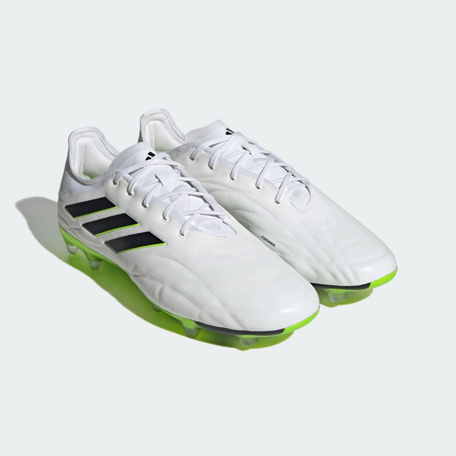 Boot connects with ball and the rest is history. Classic and comfortable. When you pull on adidas Copa Pure, everything just clicks. Look and feel iconic in football boots that include a quilted Fusionskin leather forefoot for a silky-smooth touch. Underneath, a specialist outsole keeps you classy on firm ground. Standout details include iridescent 3-Stripes and a contrast heel blinker.