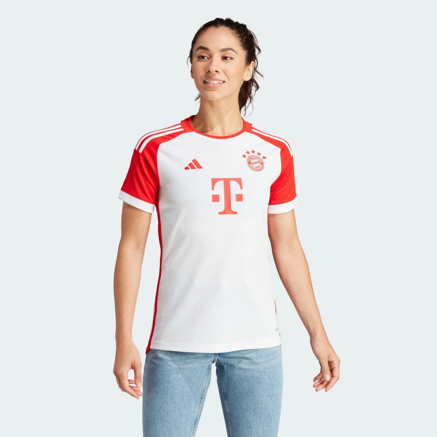 A modern reinterpretation of the legendary club’s first kit, the FC Bayern Home Authentic Jersey pays tribute to the great players of the past. The first full red and white kit for 30 years, it brings a nostalgic yet fresh twist to a team famed for its football consistency.Cut for a close fit, the jersey is crafted entirely from 100% recycled polyester double knit and finished with a premium ribbed crewneck. Behind the scenes, sweat-wicking AEROREADY fabric helps to keep you feeling comfortable whether you’re headed for the grandstands or the pitch. Flash your homegrown pride thanks to the embossed FC Bayern München logo, ‘Mia San Mia’ signoff at the back and embroidered crest.