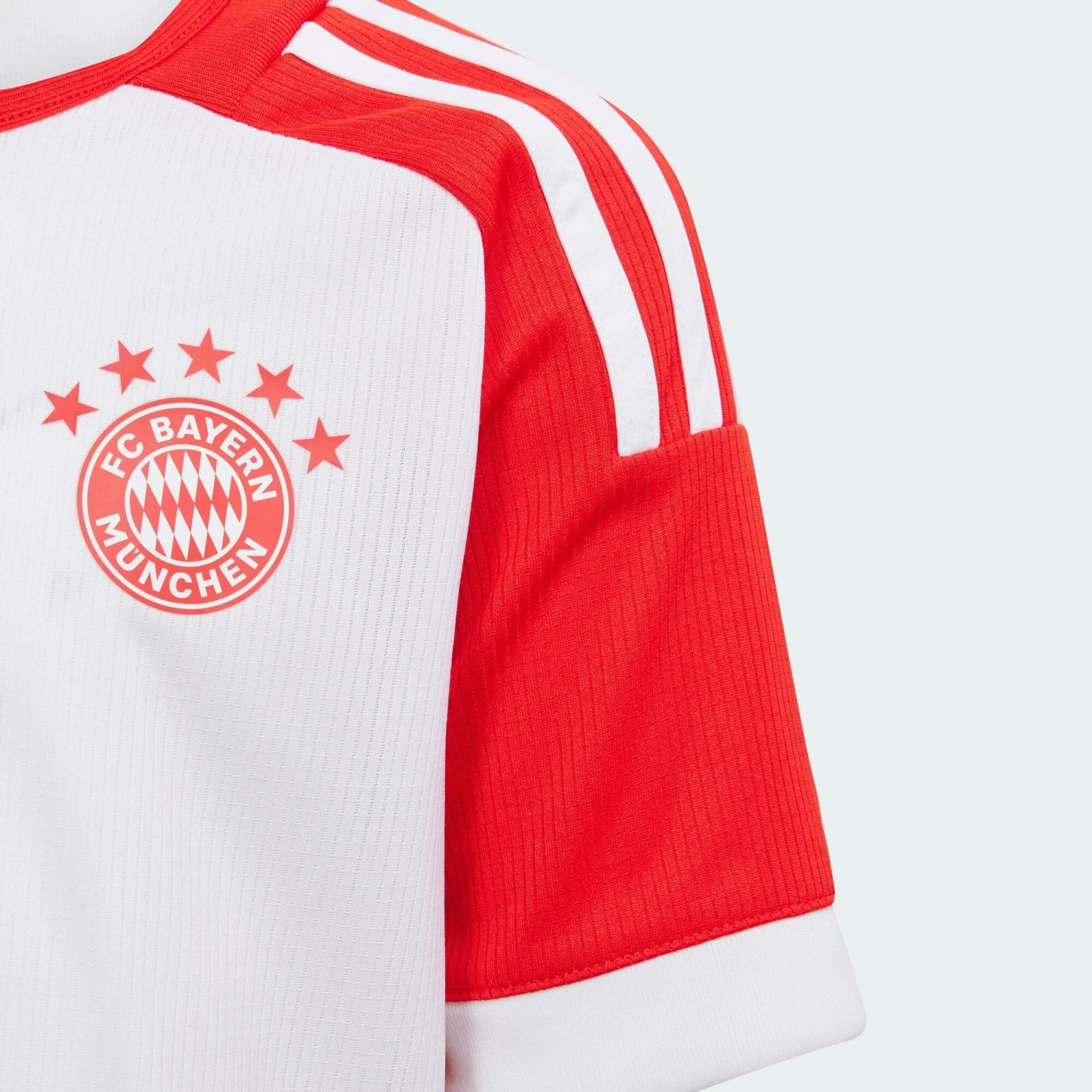 A blast from the past for a new generation of fans. For FC Bayern’s 23/24 home kit, adidas took inspiration from the kit the club wore during its first season in the top division. Created for young supporters, this kids’ mini kit includes the jersey and shorts the players wear at the Allianz Arena, as well as a pair of crew-length socks. Moisture-wicking AEROREADY makes it a comfortable wear.Made with a series of recycled materials, and at least 70% recycled content, this product represents just one of adidas’ solutions to help end plastic waste.