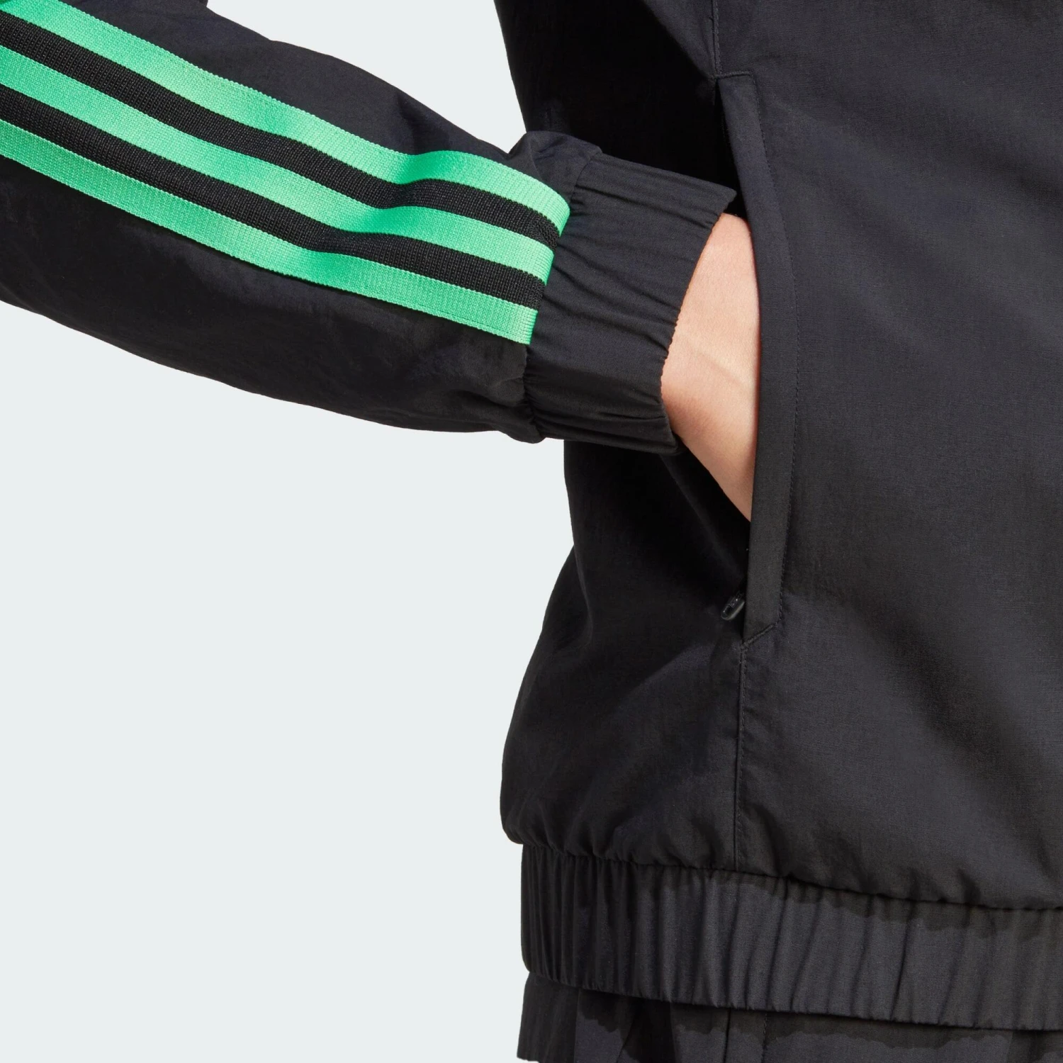 A woven FC Bayern jacket for the spotlight, made in part with recycled materials.