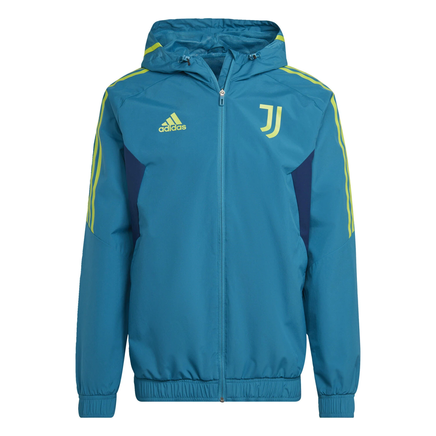 No matter how hi-tech your training facilities are, you can’t always outplay Mother Nature. That’s why adidas football jackets like this one are part of Juventus’ Condivo 22 training kit. Its elastic cuffs and hem and water-repellent finish keep light showers out so you can concentrate on your game. The mesh lining makes it a comfortable wear.Made with 100% recycled materials, this product represents just one of adidas’ solutions to help end plastic waste.