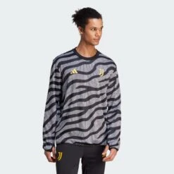 Inspired by the home kit, this adidas Juventus football top carries the zebra coat theme one stage further with an eye-catching allover print. AEROREADY means you can stay warm and comfortable during intensive exercise. If you need any more coverage, cuff thumbholes let you pull those long sleeves over your hands.Made with 100% recycled materials, this product represents just one of adidas’ solutions to help end plastic waste.