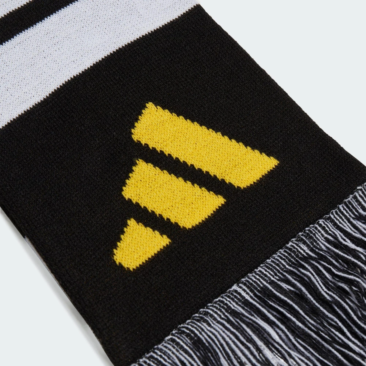 A traditional sign of football fandom. Held aloft, twirled above your head or draped around your shoulders, this adidas Juventus scarf is all you need to show who you back on the pitch. Soft plain knit fabric makes it a pleasure to hold. Fringed ends keep the look classic.