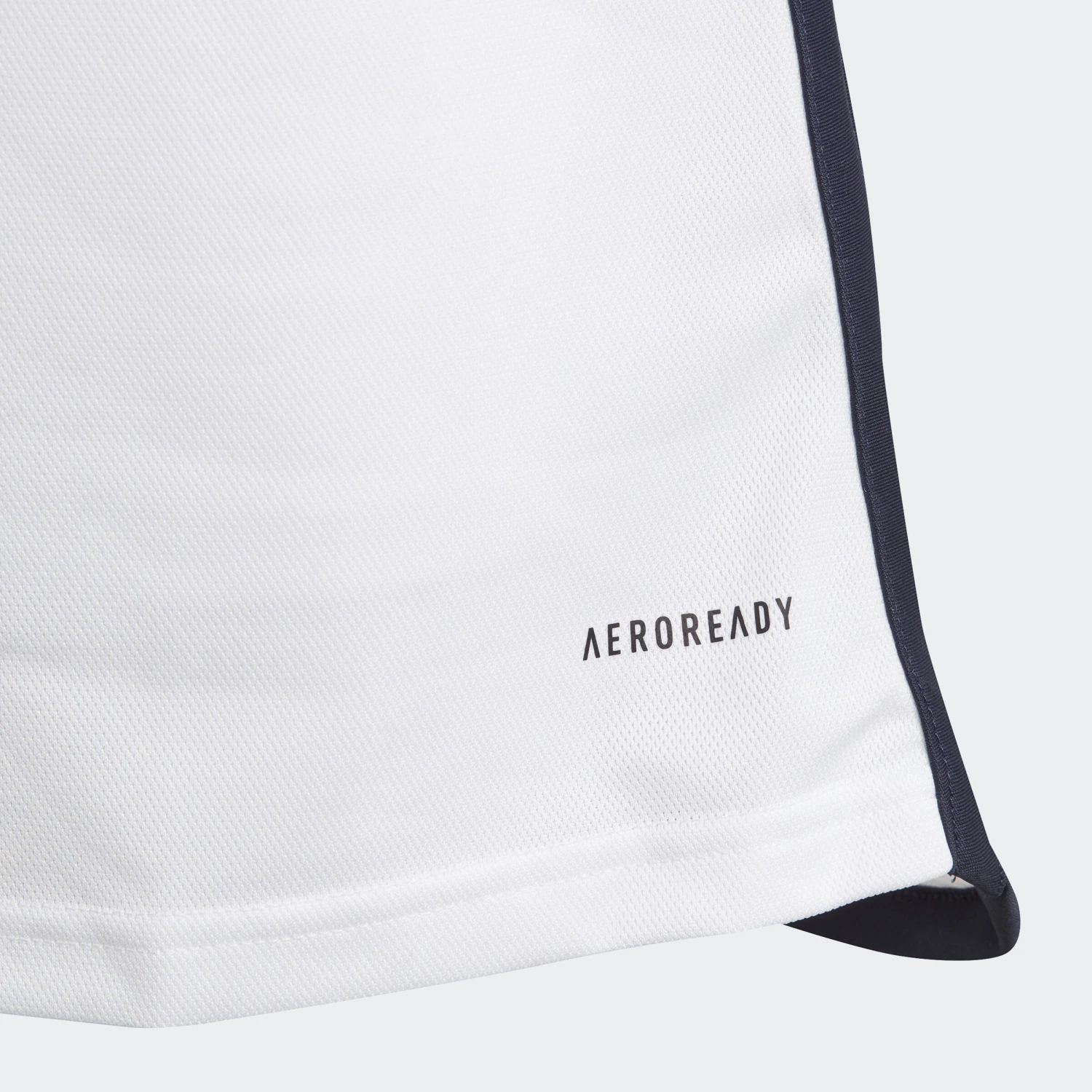 This Adidas Real Madrid kids’ fan shirt is a synonym of elegance and style, whether on the pitch or outside.For football teams, victory is essential. To do that, it’s part of a larger plan. The legendary white and golden details evoke the club’s greatest moments.