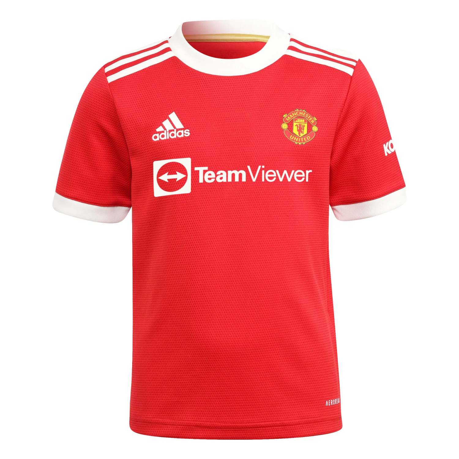 An outfit worthy of the future heroes of Old Trafford. This adidas football kit for kids is a miniature version of the strip Manchester United wear for home games. It’s made of soft, comfortable fabric with moisture-absorbing AEROREADY, so your little fan stays dry.This product is made with Primegreen, a series of high-performance recycled materials.