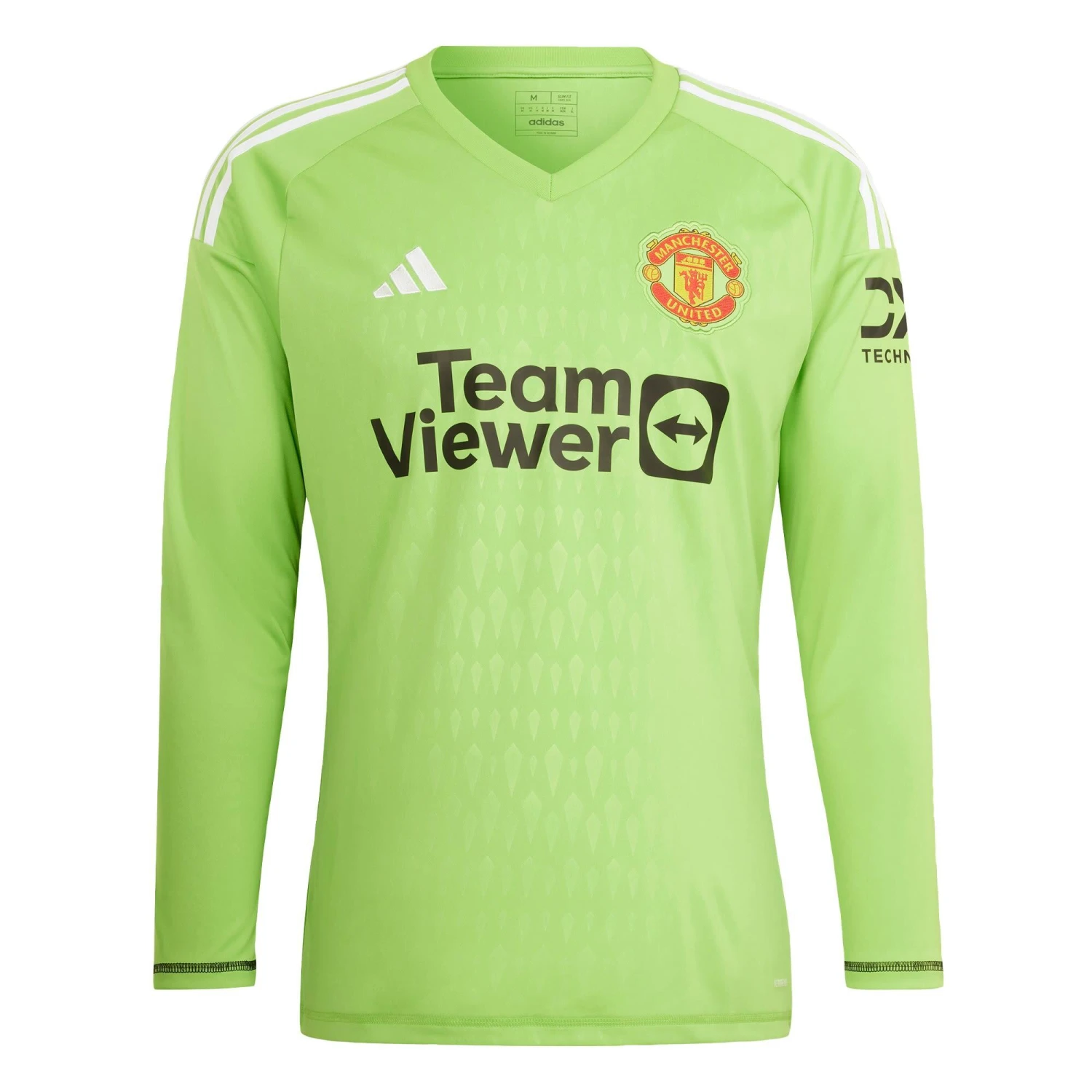 Defend your football colours. This adidas Manchester United jersey is made for goalkeepers and number one fans. Sharing the look of the shirts the club’s custodians wear in 23/24, it’ll keep you flying around your box with moisture-absorbing AEROREADY, a slim fit and a stretchy construction. That woven badge on the chest reminds everyone who you root for.Made with 100% recycled materials, this product represents just one of adidas’ solutions to help end plastic waste.