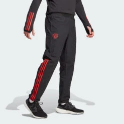 Manchester United players are rarely out of the public eye. To help them look as much a team off the pitch as they do on it, they wear adidas football track pants like these. Showing off a woven version of the club’s badge on one leg, the pants are created to keep you comfortable with extra fabric at the crotch. A pair of zip pockets provides secure storage for your everyday essentials.Made with 100% recycled materials, this product represents just one of adidas’ solutions to help end plastic waste.