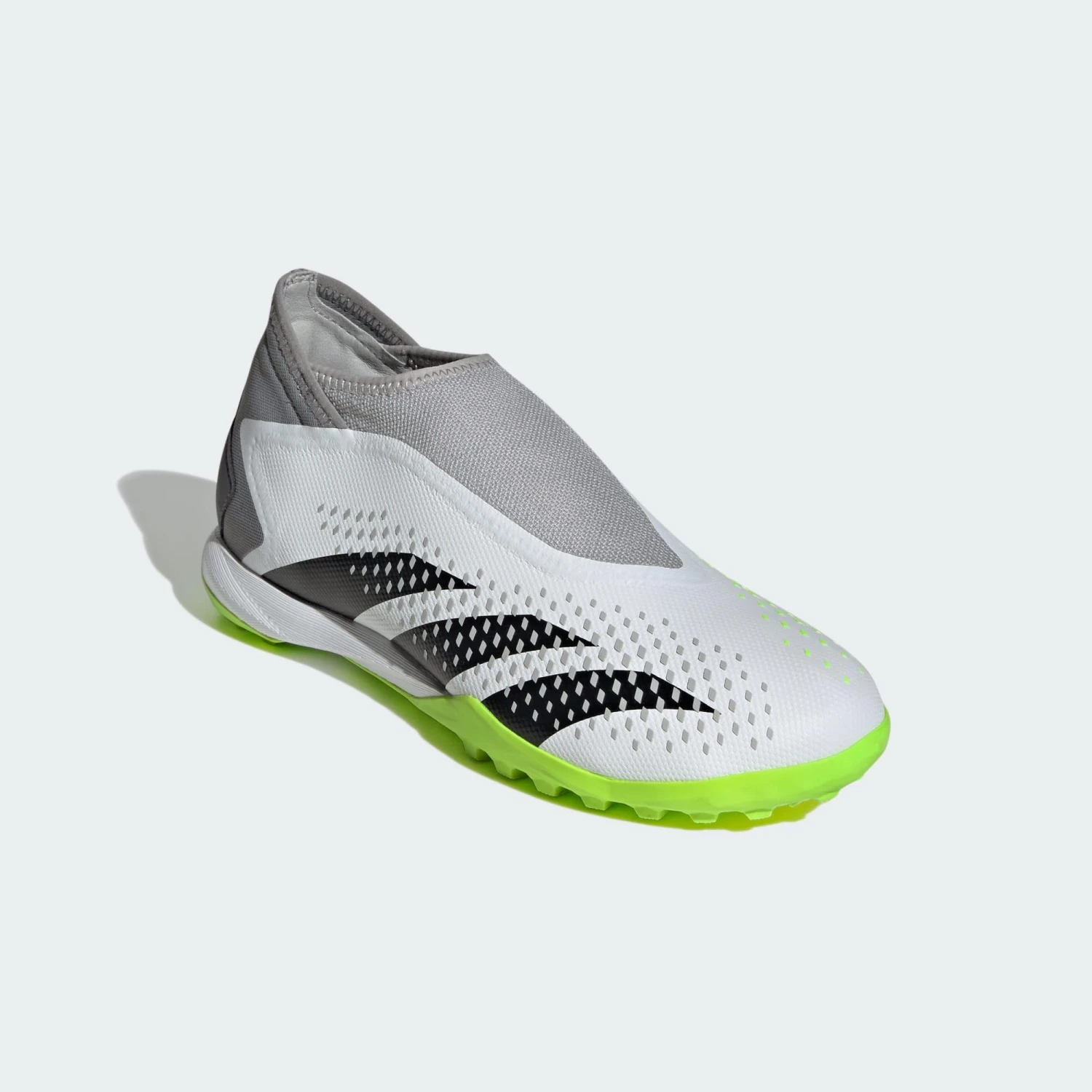 Top corner. Bottom corner. All the corners. adidas Predator Accuracy is crafted for goalscoring, so you know the ball will find the net. The fun’s in choosing how it gets there. These laceless football boots have a coated textile forefoot that’s covered in High Definition Texture for added grip on the ball. Underneath, a lug rubber outsole ensures you dominate on artificial turf courts.Made with a series of recycled materials, this upper features at least 50% recycled content. This product represents just one of adidas’ solutions to help end plastic waste.