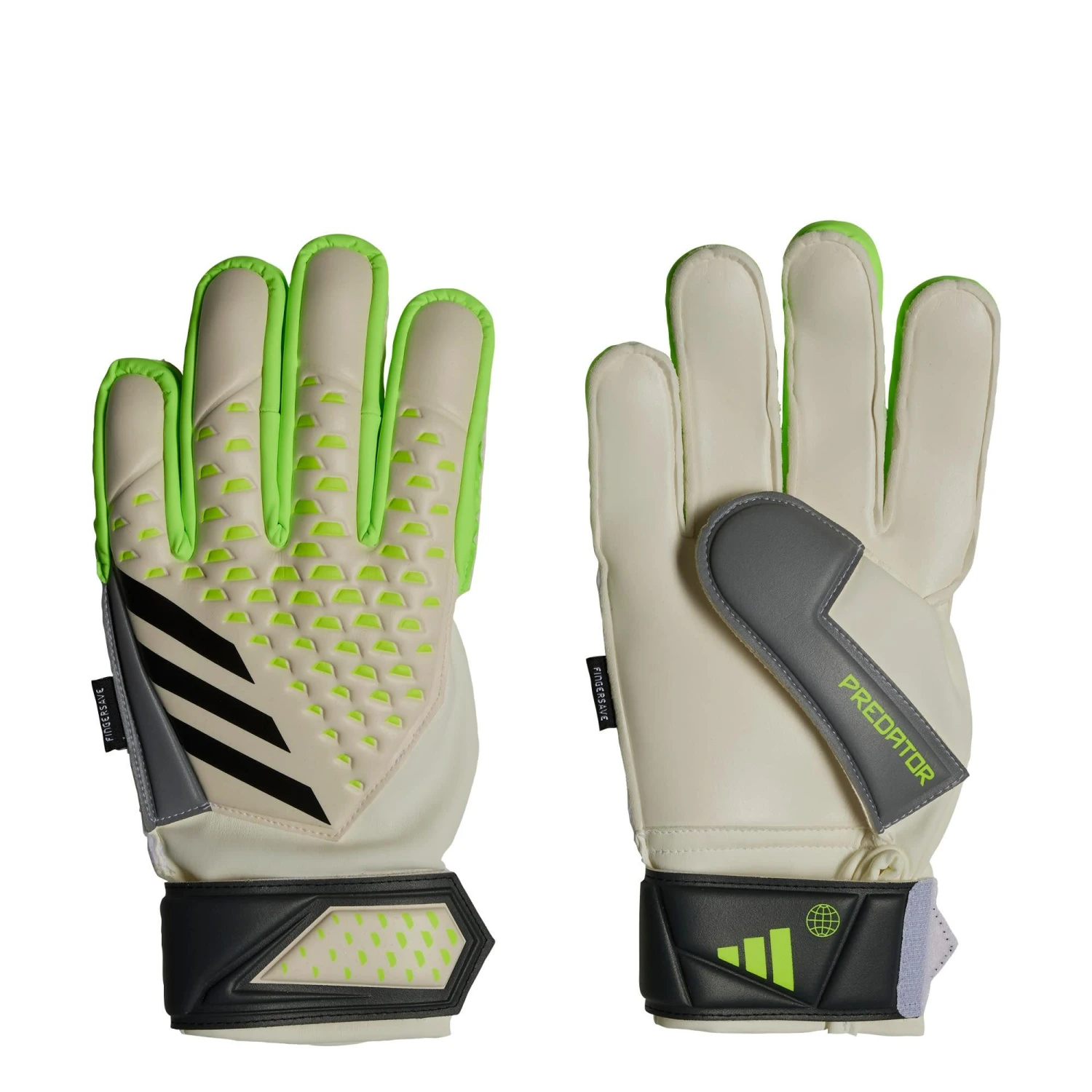 Target pinpoint punching and flawless ball handling in these juniors’ Predator goalkeeper gloves from adidas. Debossed High Definition Texture on their backhand will add accuracy to your clearances, while a Soft Grip Pro palm helps you cling to the football at crosses and cushions pile drivers. Supportive spines in the fingers add confidence to every catch and throw.A minimum of 50% of this product is a blend of recycled and renewable materials.
