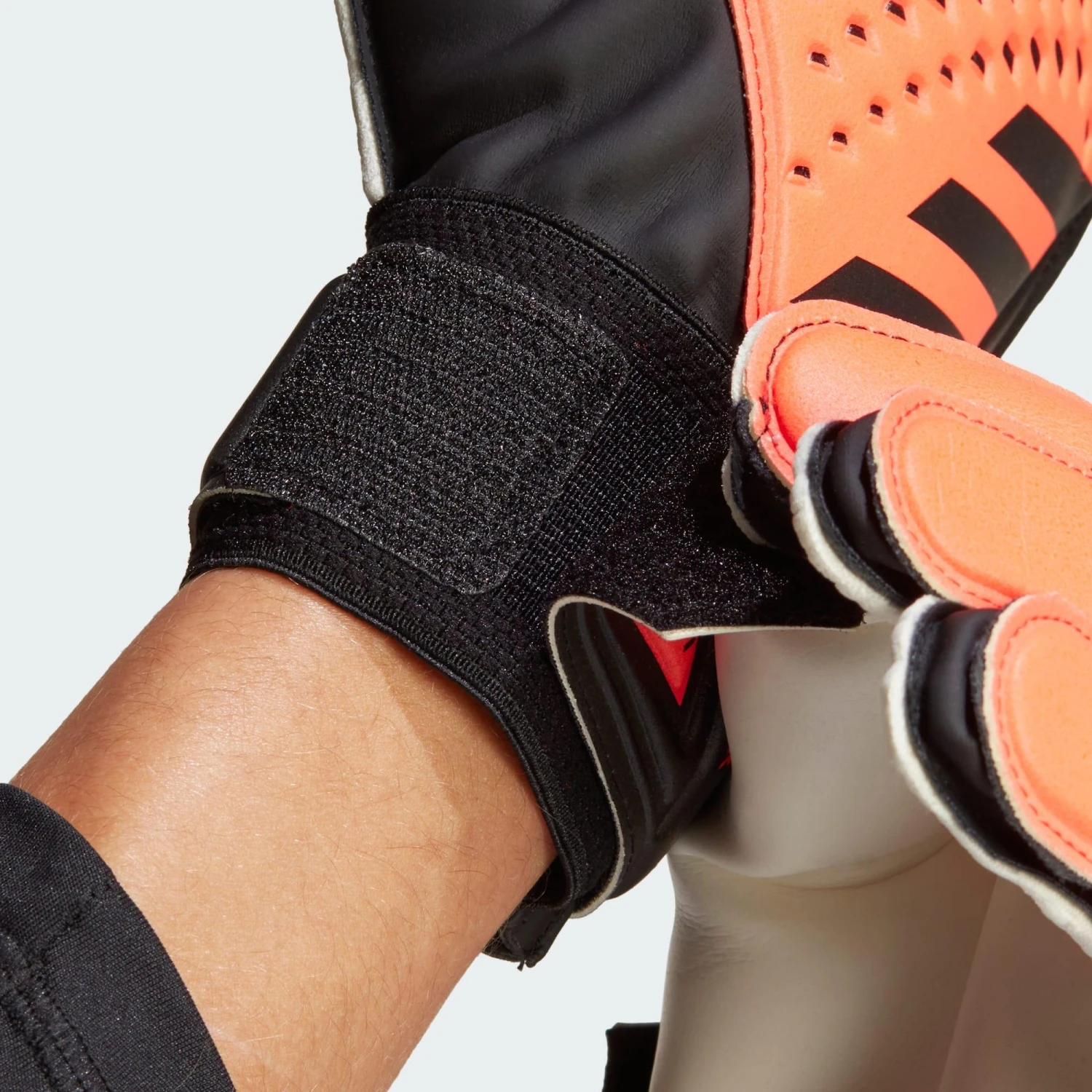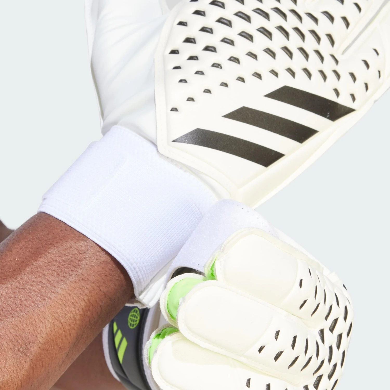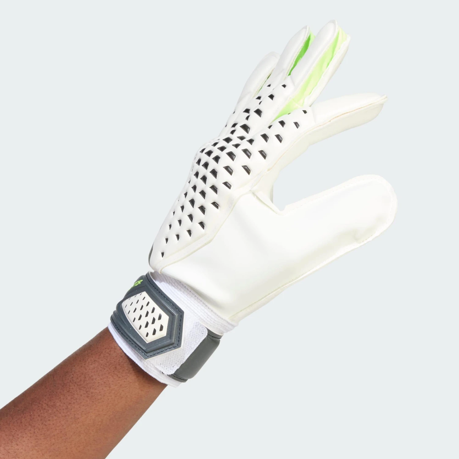 Target pinpoint punching and flawless ball handling in these Predator goalkeeper gloves from adidas. Debossed High Definition Texture on the backhand adds accuracy to clearances, while a Soft Grip palm helps you cling to the football at crosses and cushions pile drivers. A fixed, half-wrap strap locks you in for confident training.A minimum of 50% of this product is a blend of recycled and renewable materials.