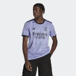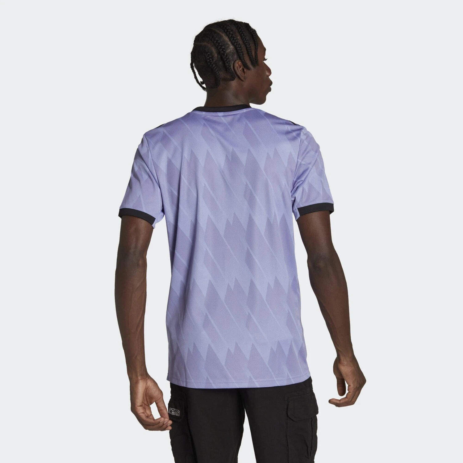 Always part of football fashion. This adidas Real Madrid away jersey stars in fresh shades and flashes an eye-catching graphic inspired by the stripe spanning the club badge. Built to keep fans comfortable, it includes moisture-wicking AEROREADY and mesh panels. A woven, monochromatic version of that famous badge shares your pride.Made with 100% recycled materials, this product represents just one of adidas’ solutions to help end plastic waste.
