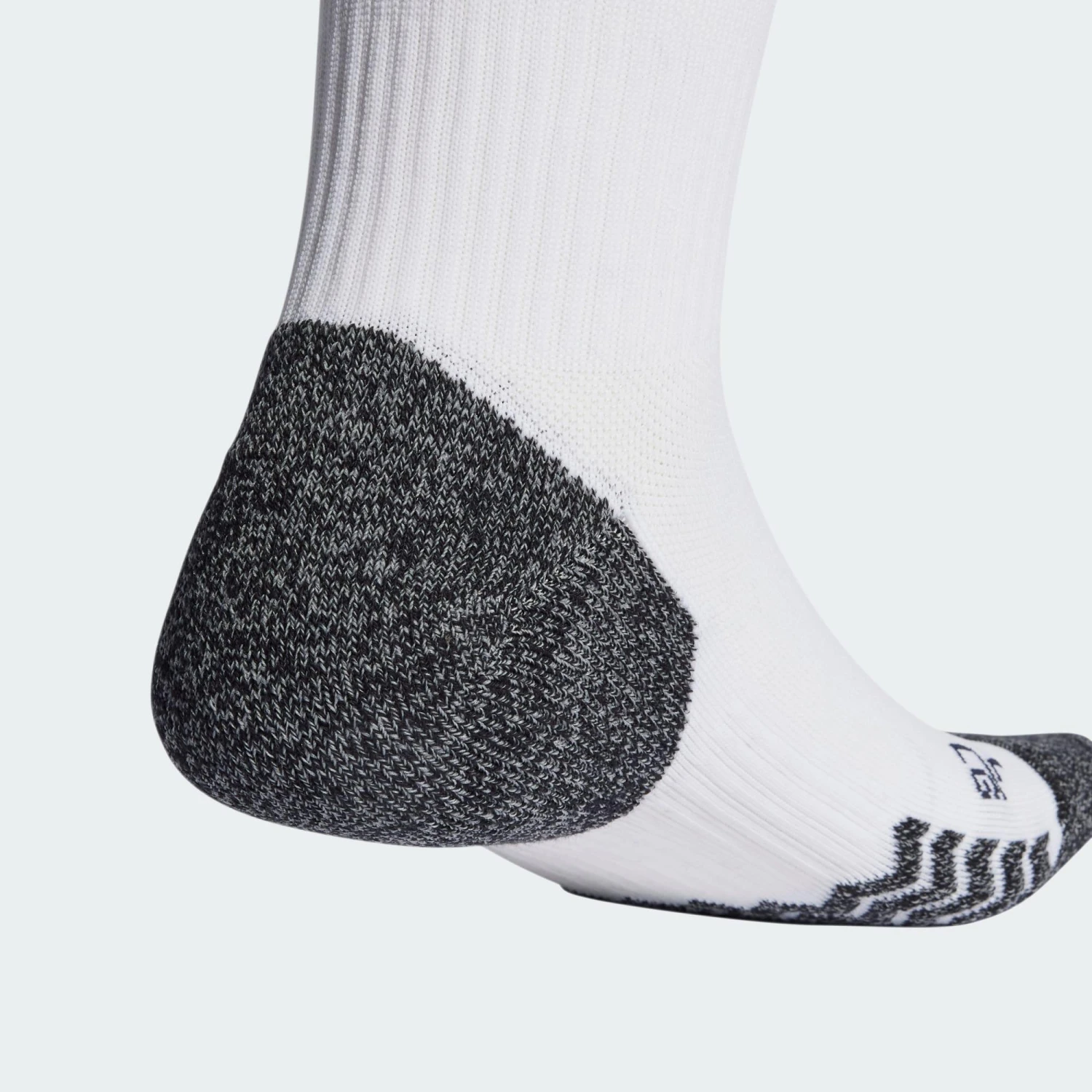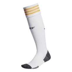Celebrating a history of football elegance. Part of a classic-looking home kit, these adidas Real Madrid socks combine cushioning, arch support and moisture-absorbing AEROREADY to keep you comfortable while you shout for your team. Engineered into the fabric, team details add a final flourish.Made with a series of recycled materials, and at least 40% recycled content, this product represents just one of adidas’ solutions to help end plastic waste.