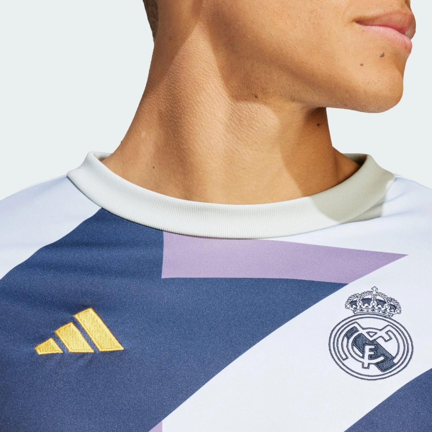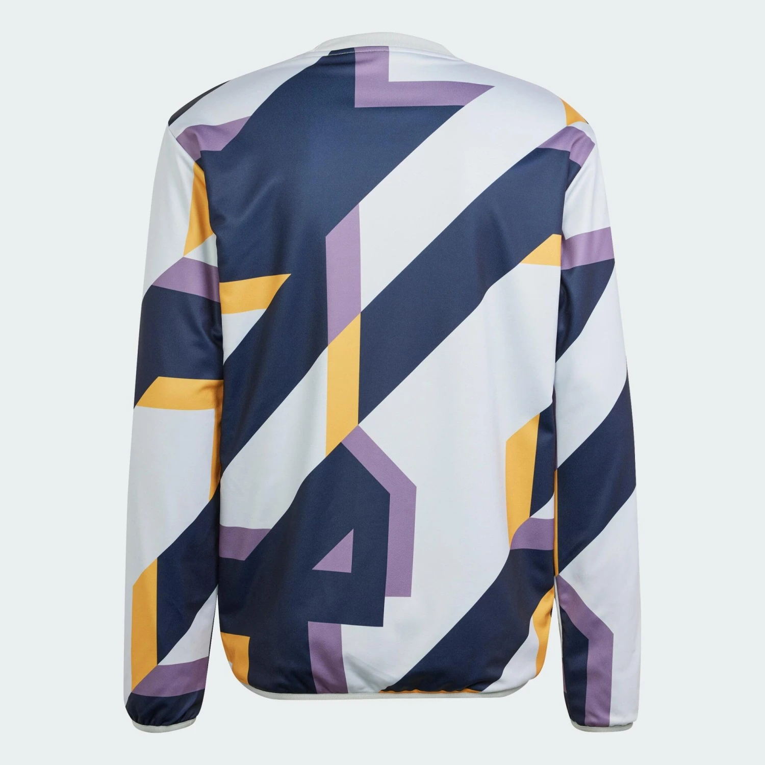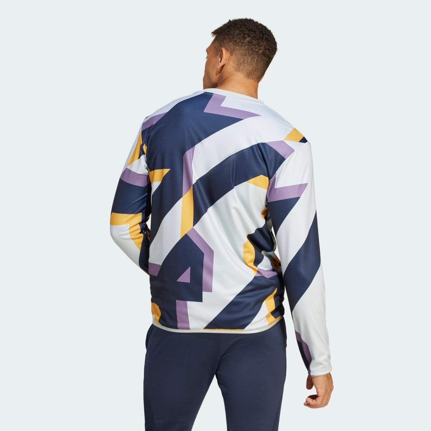 Real Madrid don’t just play with style, they warm up in style too. The striking design on this adidas football top was created by taking elegant houndstooth patterning and turning it up to the max. Its long sleeves can be extended with the help of those cuff thumbholes. AEROREADY ensures you stay dry and comfortable, even when you’ve reached optimum temperature.Made with 100% recycled materials, this product represents just one of adidas’ solutions to help end plastic waste.