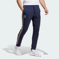 Show your passion for Real Madrid’s beautiful game. Part of the club’s adidas training range, these sweat pants pair perfectly with the crew sweatshirt, cotton tee or polo shirt from the collection. When you pull them on, their cotton-blend French terry fabric will feel soft against your skin, making them a comfortable wear. The regular fit tapers towards the ankle for a classic football feel.A minimum of 70% of this product is a blend of recycled and renewable materials.