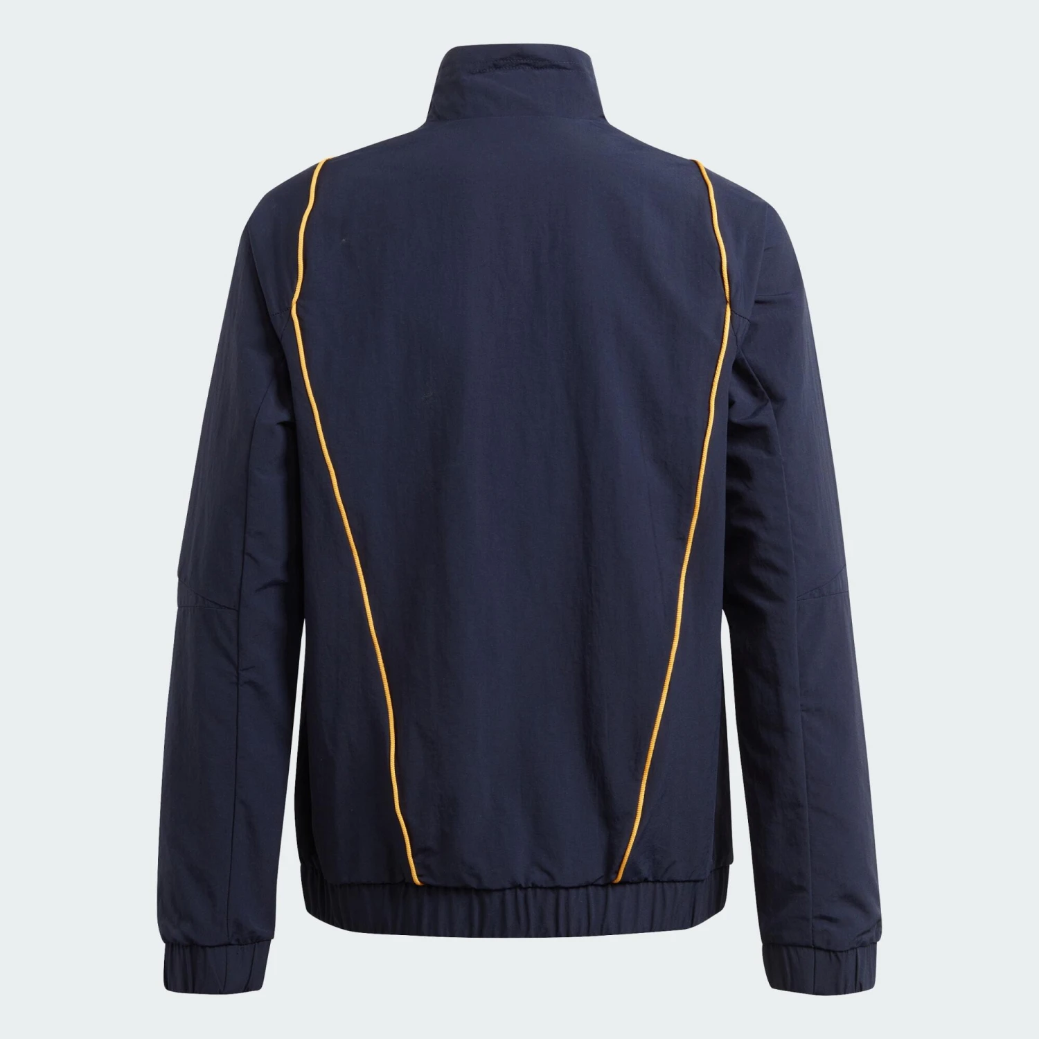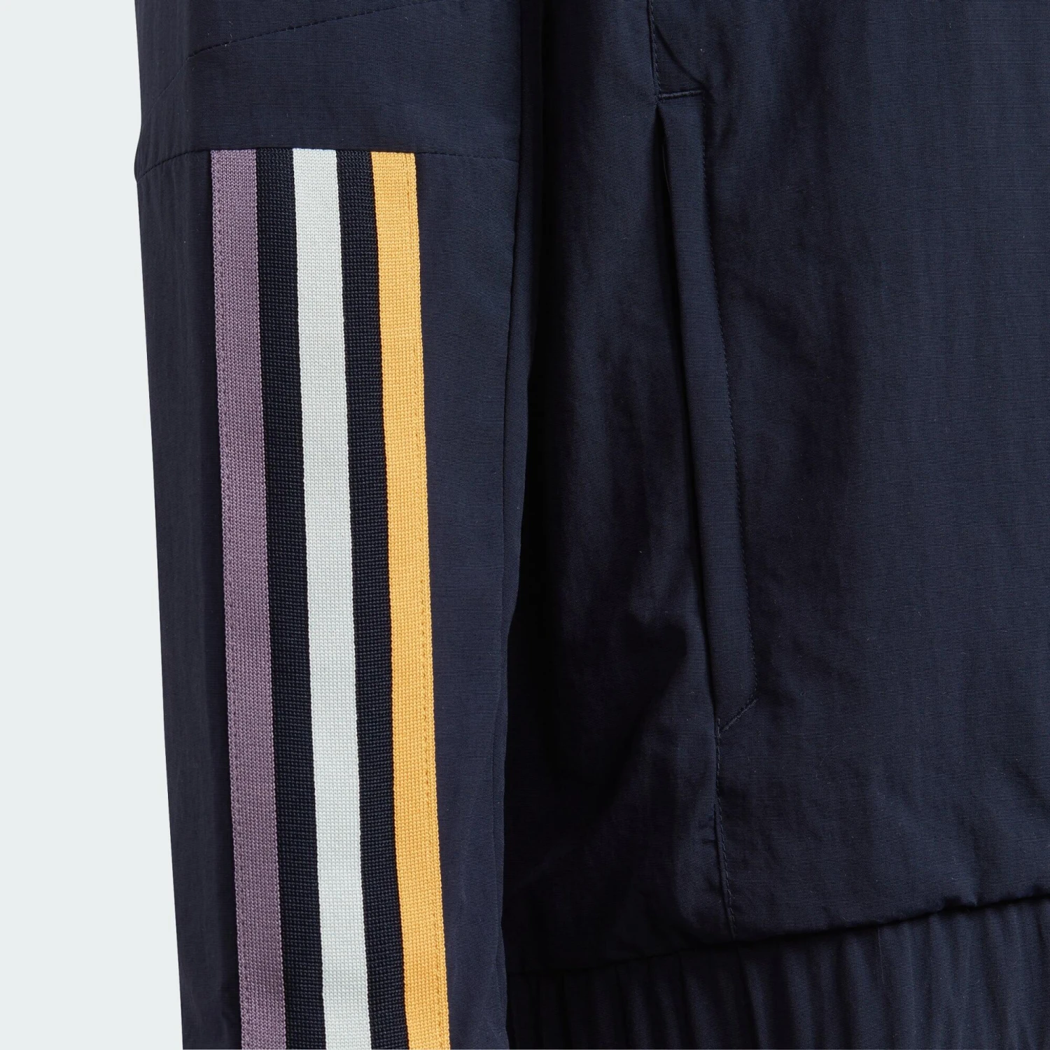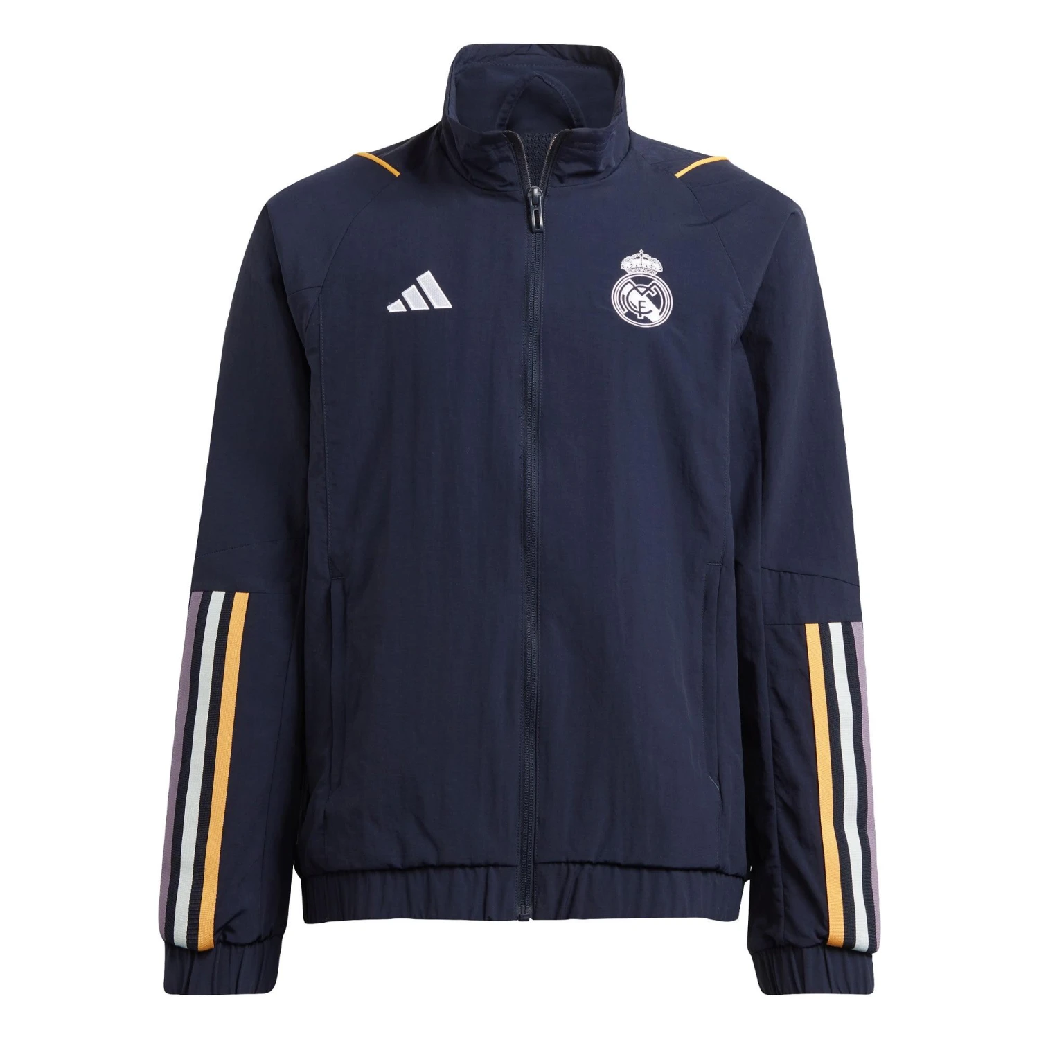 Make your mark on the sidelines in an adidas football jacket created for Real Madrid squad members to wear in front of the world’s media. The lightweight plain weave fabric of this juniors’ version is mesh-lined for a comfortable wear, and those zip pockets are ideal for keeping essentials within reach. An embroidered team badge on the chest shows you stand shoulder to shoulder with your team.Made with a series of recycled materials, and at least 70% recycled content, this product represents just one of adidas’ solutions to help end plastic waste.