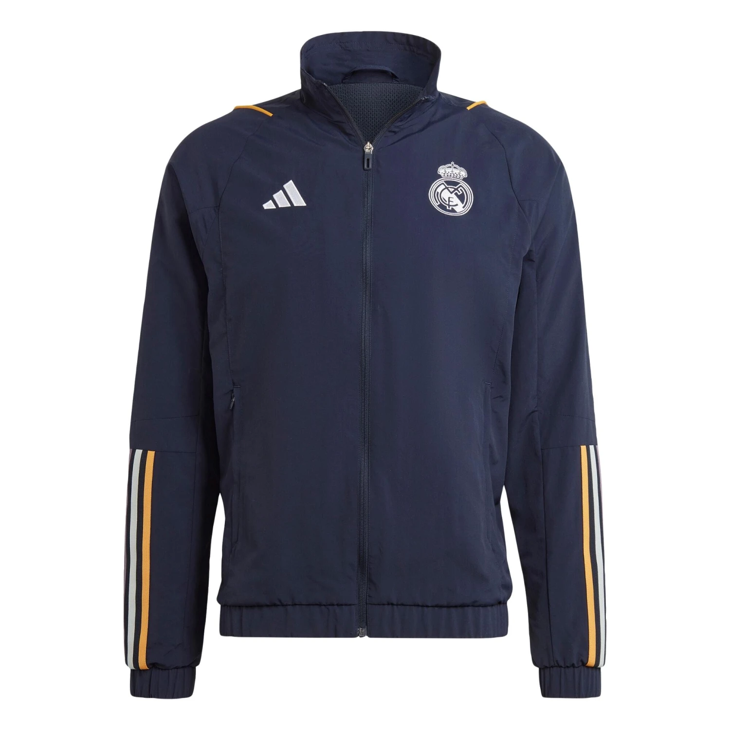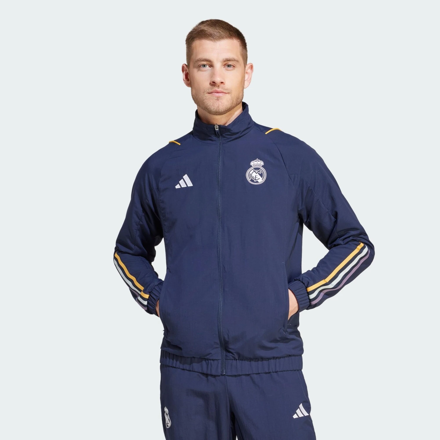 Make your mark on the sidelines. This adidas football jacket was created for Real Madrid squad members to wear in front of the world’s media. Its lightweight plain weave fabric is mesh-lined for a comfortable wear, and those zip pockets are ideal for keeping essentials within reach. An embroidered team badge on the chest shows you stand shoulder to shoulder with your team.Made with a series of recycled materials, and at least 70% recycled content, this product represents just one of adidas’ solutions to help end plastic waste.
