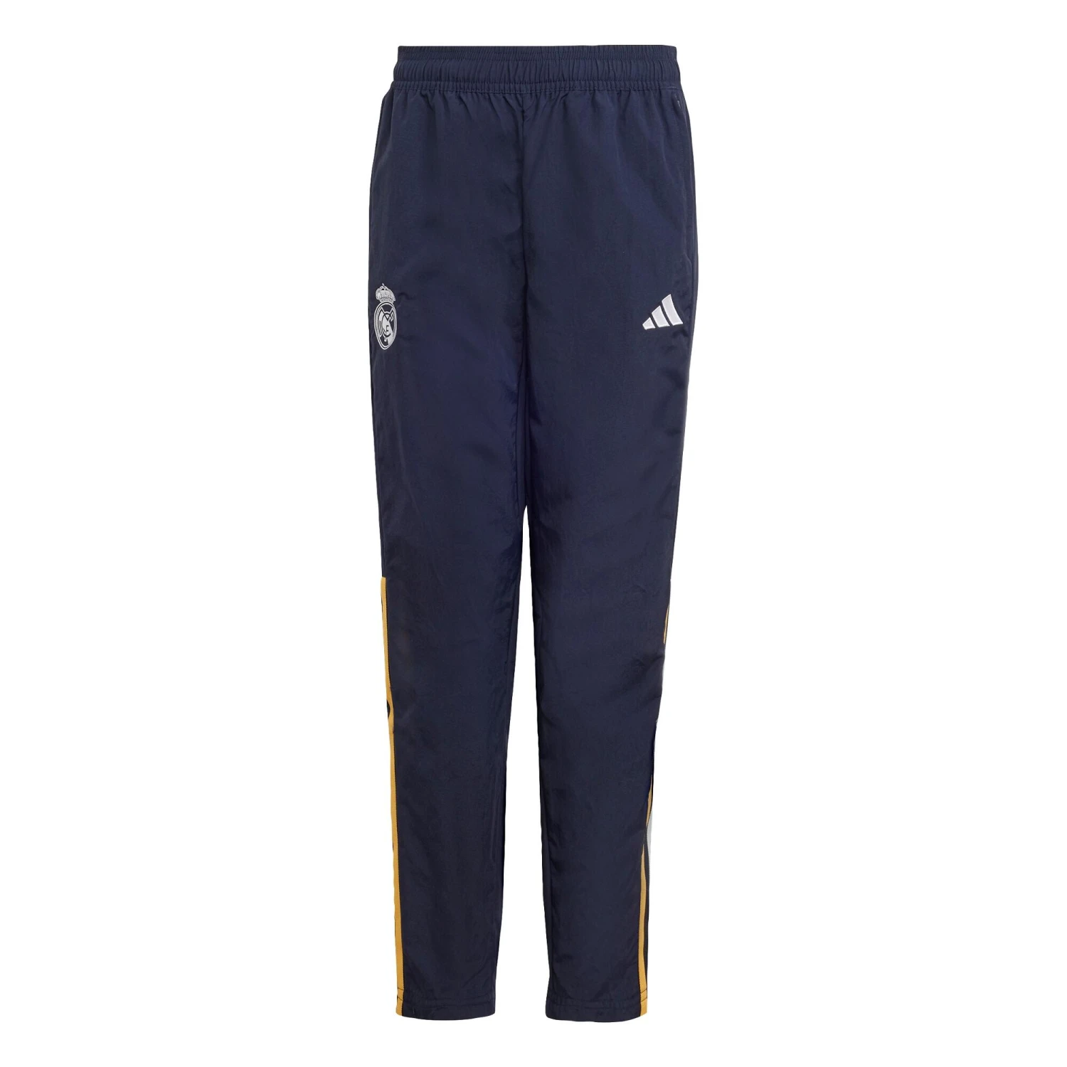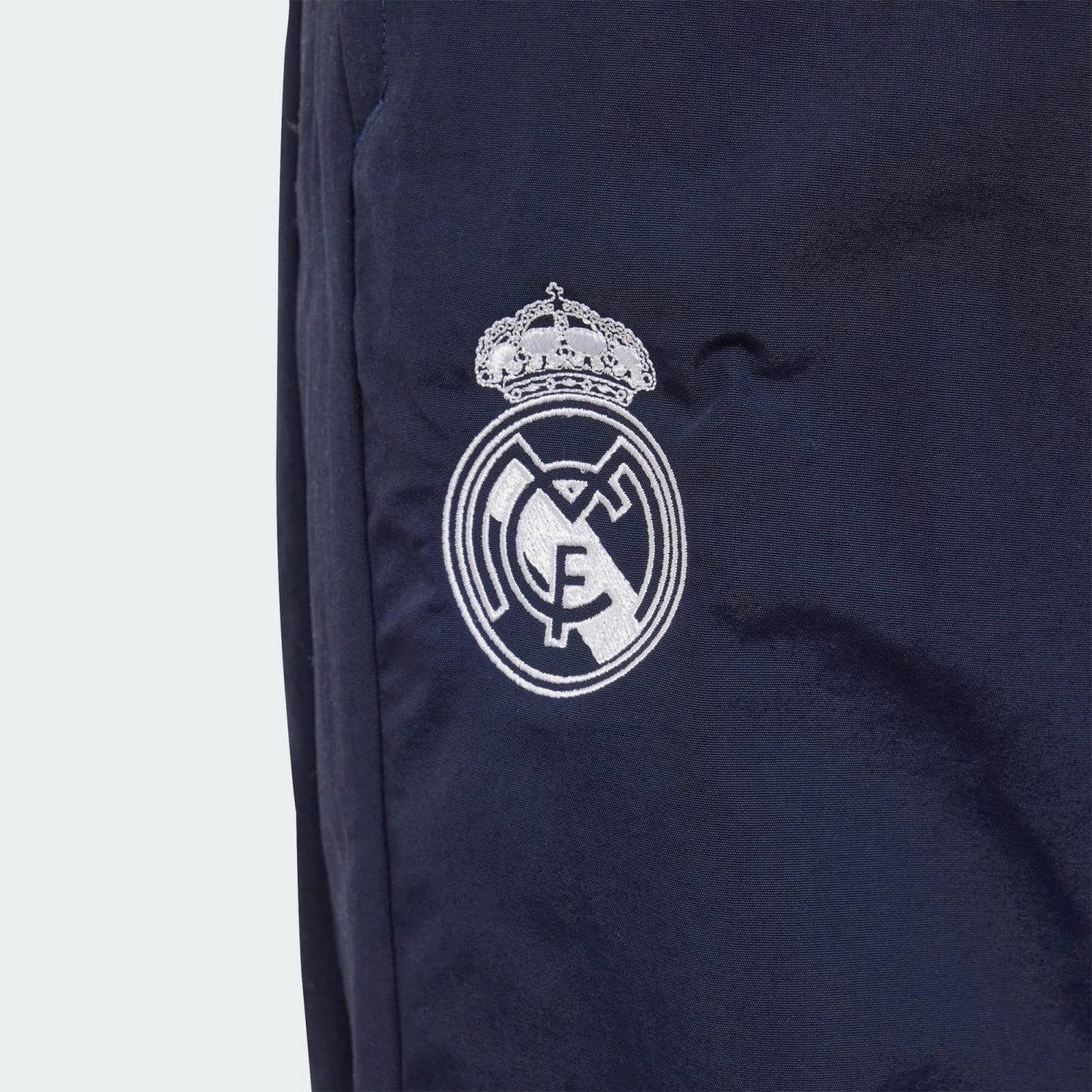Get Real Madrid’s off-pitch look in adidas football pants created for squad members to wear in front of the world’s media. Built from lightweight plain weave fabric, this juniors’ version includes extra room in the crotch for comfortable movement and zip pockets on the sides for secure storage of essentials. That embroidered club badge on the leg shows you stand with your team.Made with 100% recycled materials, this product represents just one of adidas’ solutions to help end plastic waste.
