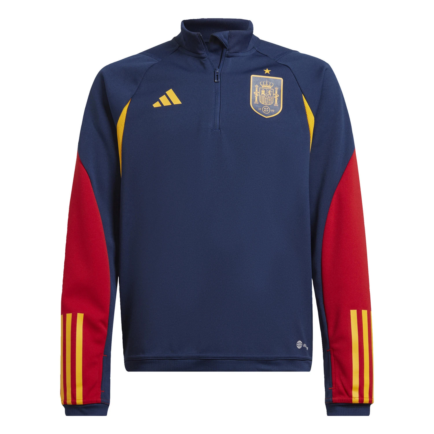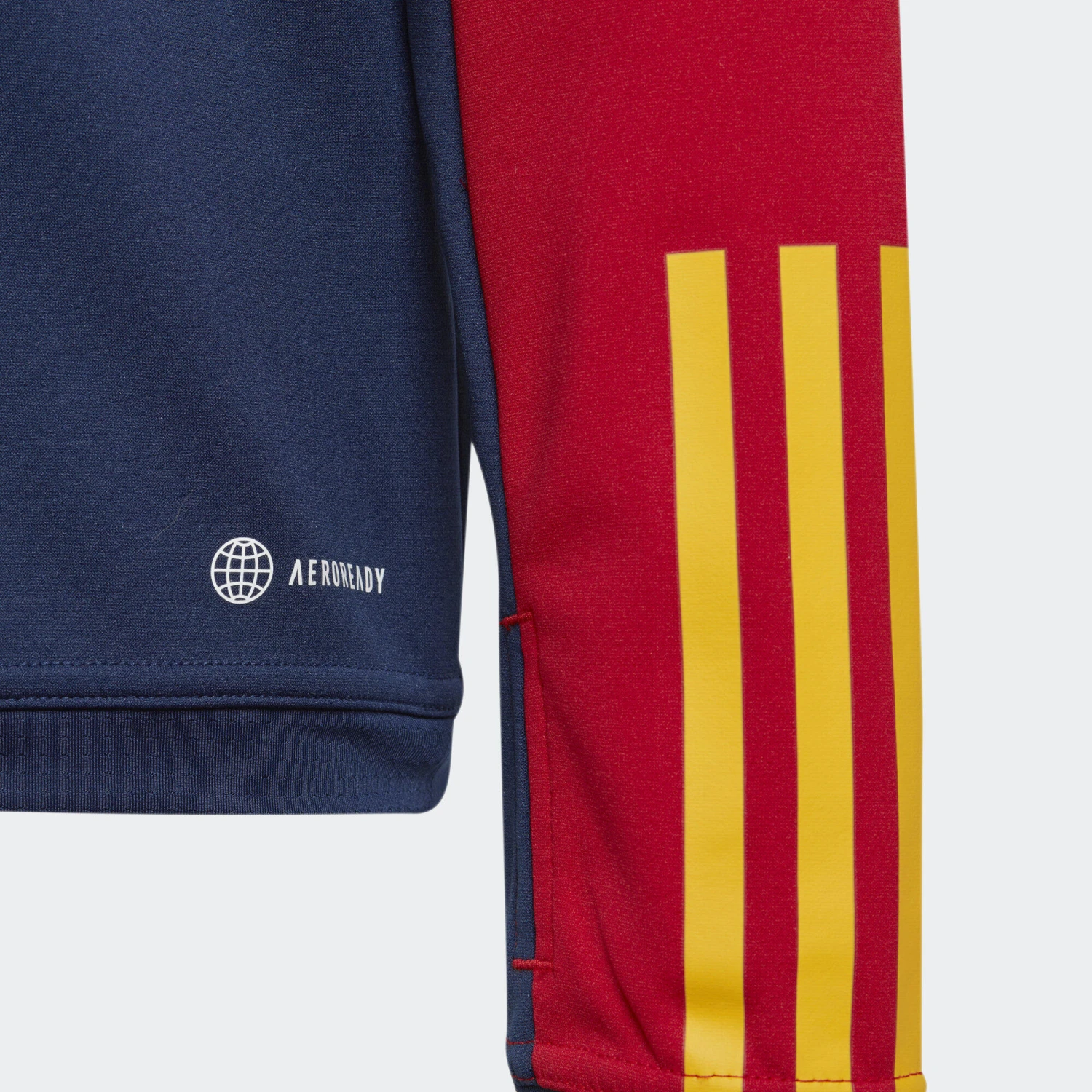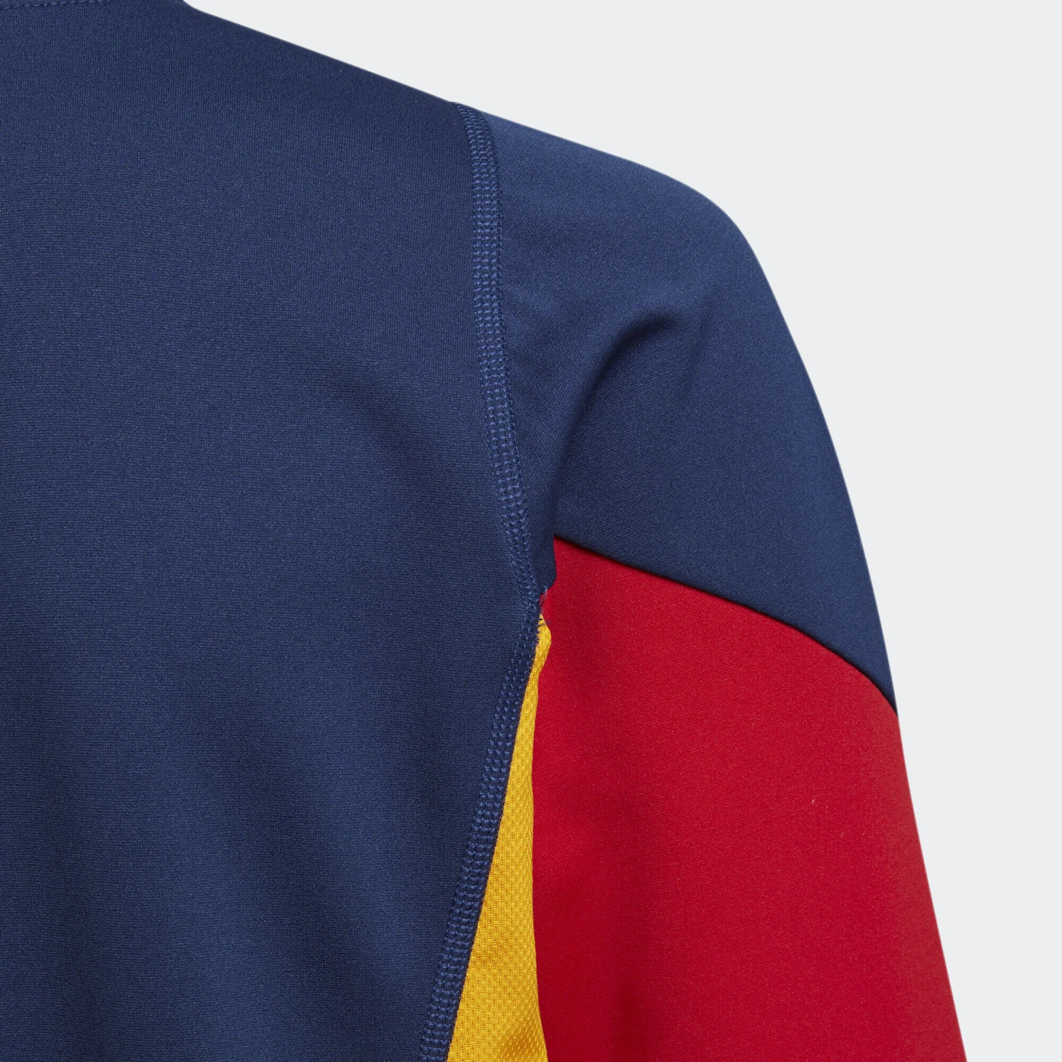 Powered by the belief of a nation. Spain players push their limits in training with the help of adidas football tops similar to this juniors’ one. Breathable mesh inserts, moisture-absorbing AEROREADY and a streamlined silhouette combine to keep them flying session after session. A quarter zip means it’s easy to rip off and throw to one side when you’re on the run.Made with 100% recycled materials, this product represents just one of adidas’ solutions to help end plastic waste.