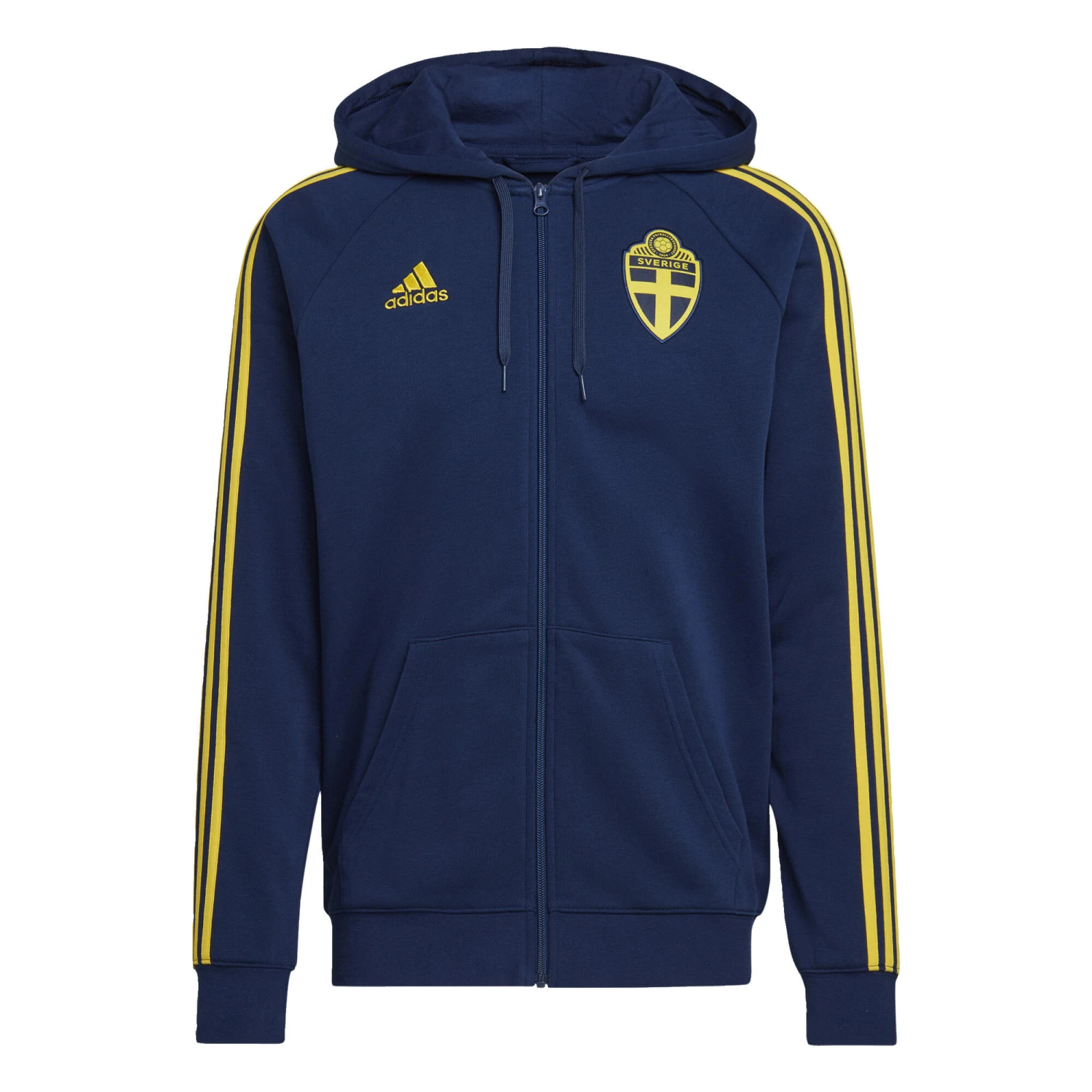 Cold weather can’t stop your passion for Sweden football. This adidas full-zip hoodie is made of a soft cotton blend to keep you warm and cosy during those chilly days. The Sweden federation crest lets you show your pride for your national team.adidas’ cotton products support more sustainable cotton farming.