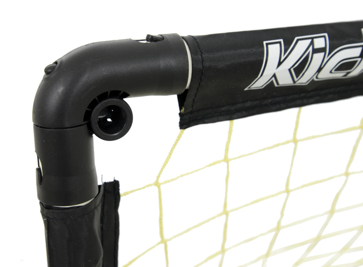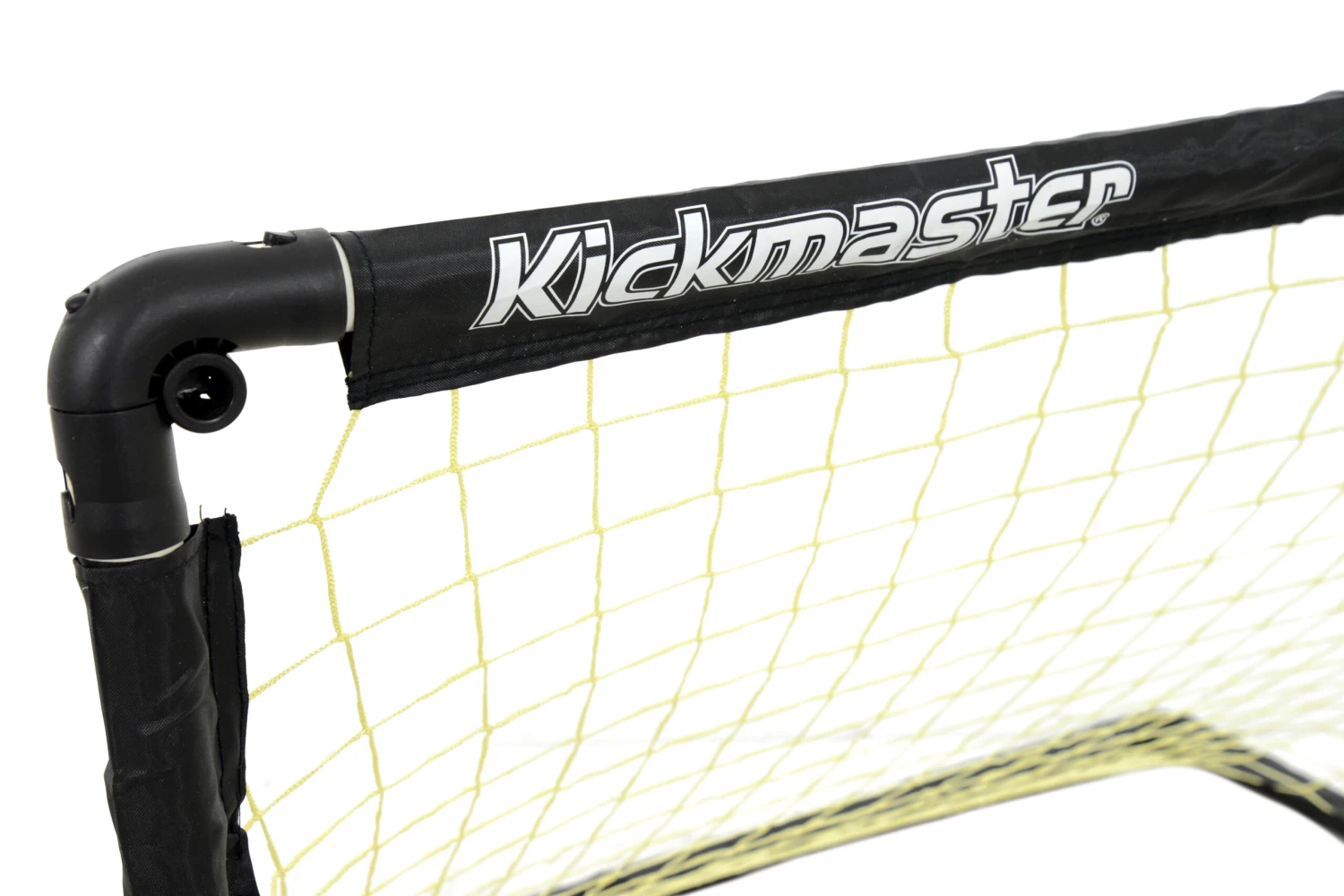 The Kickmaster range of football products is not only perfect for encouraging children to get outside and active but is ideal for honing skills at an early age for any budding players! Comes with UV resistant frame with anchor pegs. Assembled size W90cm x H61cm x D59cm. Locking tab mechanism to ensure frame stays rigid during play. No assembly required, just unfold and play. Compact and lightweight, perfect for storage and transportation. Ball and pump included. Recommended for ages 5+ years.
