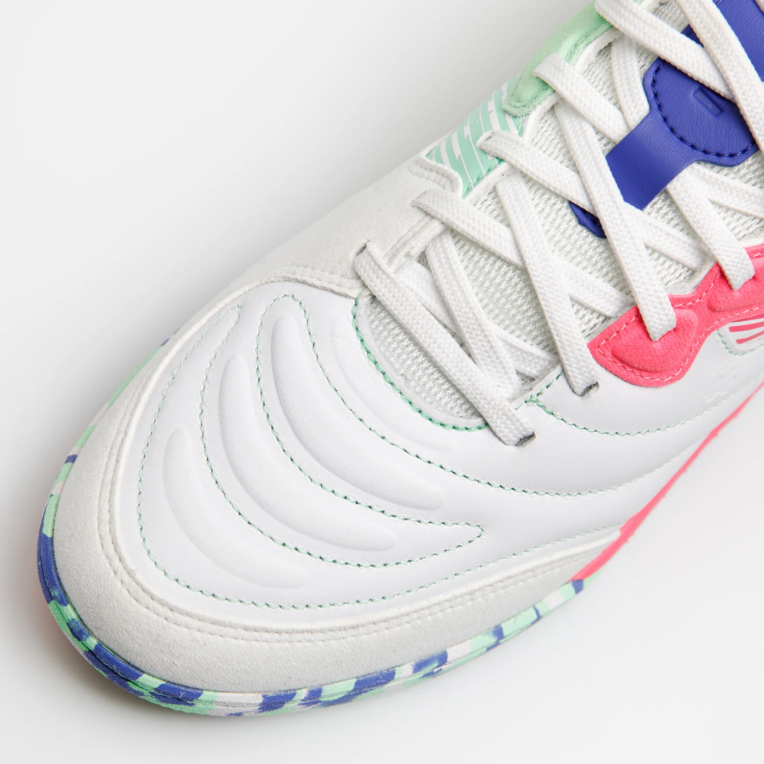 Our passionate futsal team designed these shoes for high-level players looking for durable leather shoes with excellent cushioning!The leather upper, anti-friction lining and cushioning under the entire foot provide unrivalled comfort. Reinforced areas and the seaming on the sole offer excellent durability.