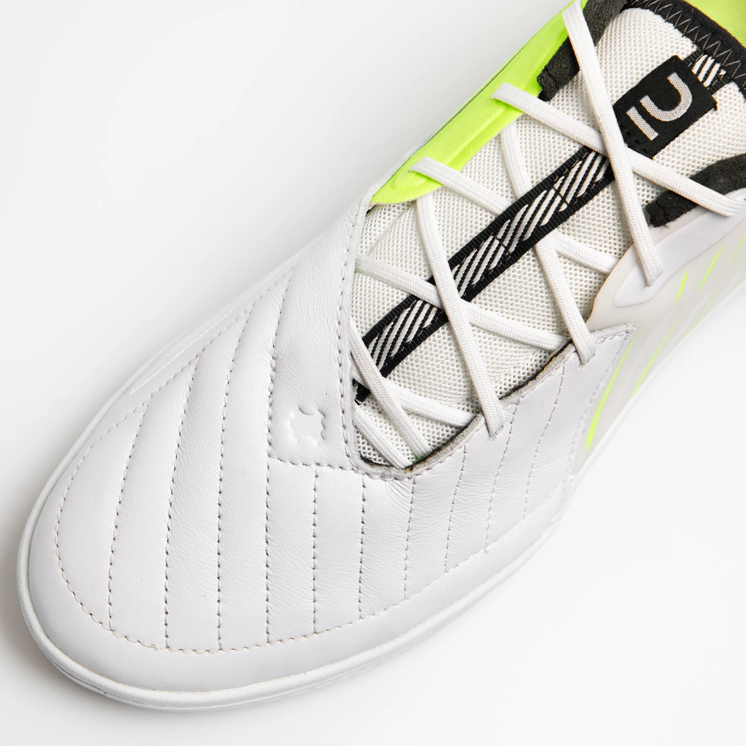 This futsal shoe was designed for players looking for a lightweight, flexible, grippy, and comfortable shoe. It gives you optimal ball feel and control thanks to its 1.4 mm full-grain leather.