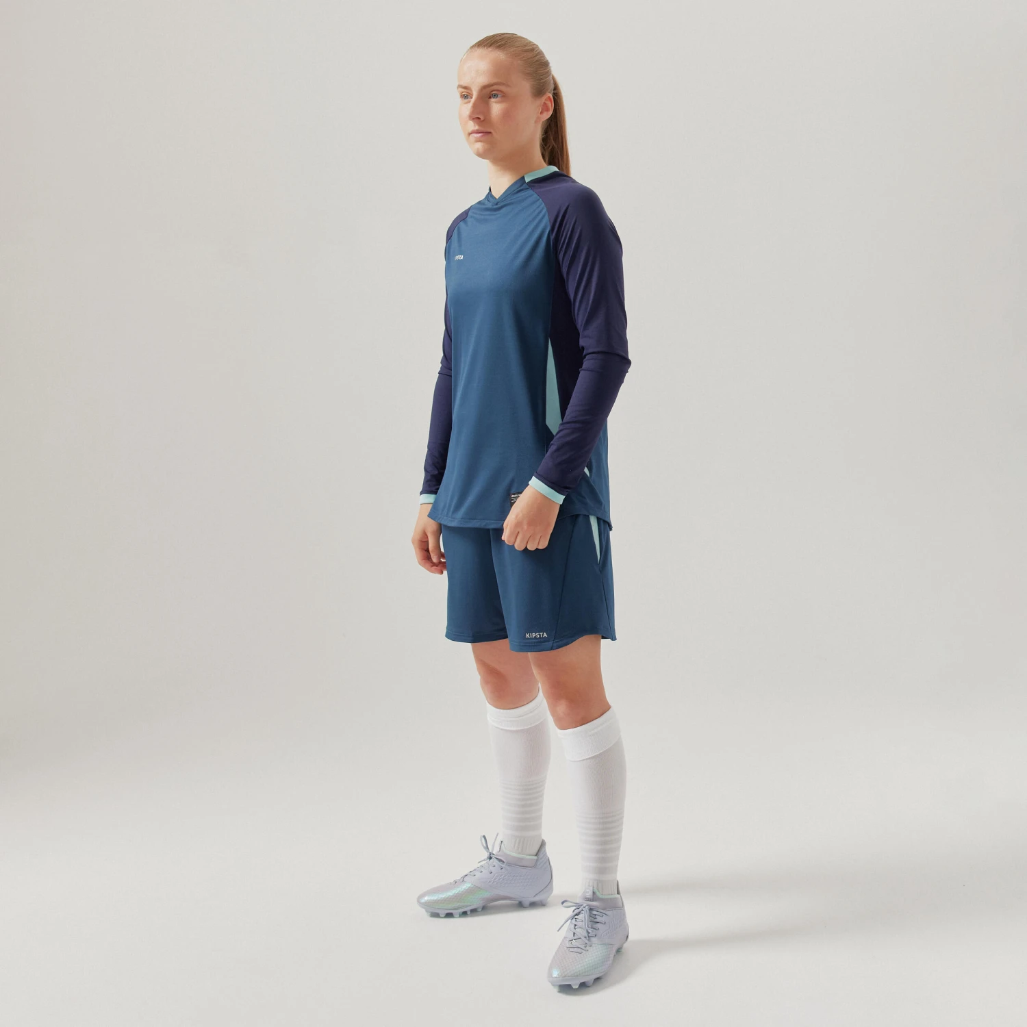 This women’s football shirt was specially designed for regular players looking to combine technicality, light weight, and flow! #UPYOURGAMEThis lightweight, draped shirt was designed in 4 different versions to suit the wishes of all women. A short-sleeved and long-sleeved version, in a slim or straight cut.