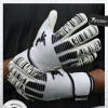 Extended palm latex contouring embossing that helps keep the wrist hinged, flexible and stops the latex bunching up and impeding the wrist. With the additional silicon contouring round the wrist It also acts as a compression for an extra snug fit.
