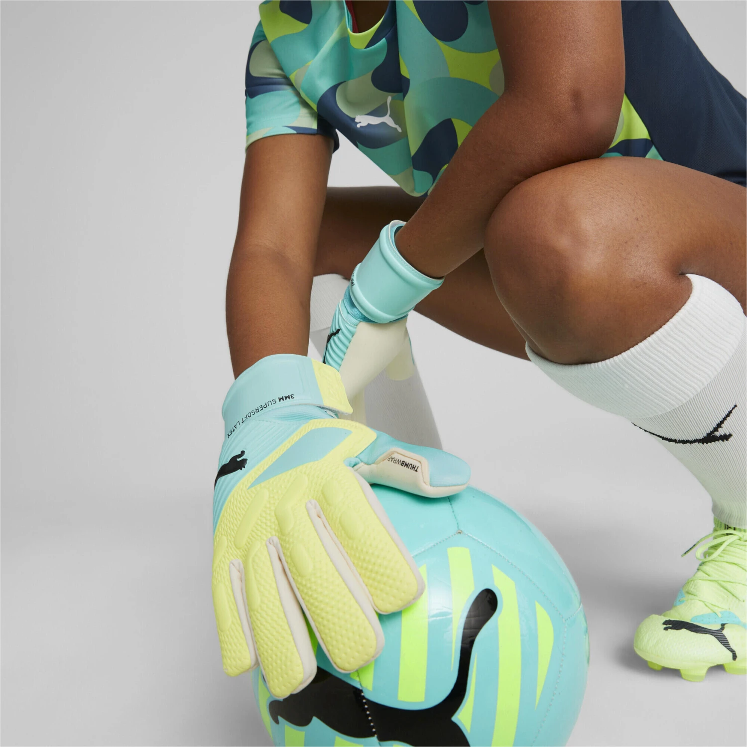 The new FUTURE & ULTRA goalkeeper gloves are made for the final stretch of the season, when every play can make the difference between first and second, glory and defeat. The latest PUMA silhouettes are here in bold new Electric Peppermint/Fast Yellow colorway, so you can push through anything and blaze past everyone on your way to glory.