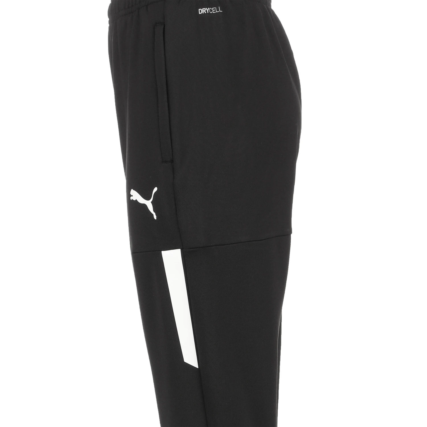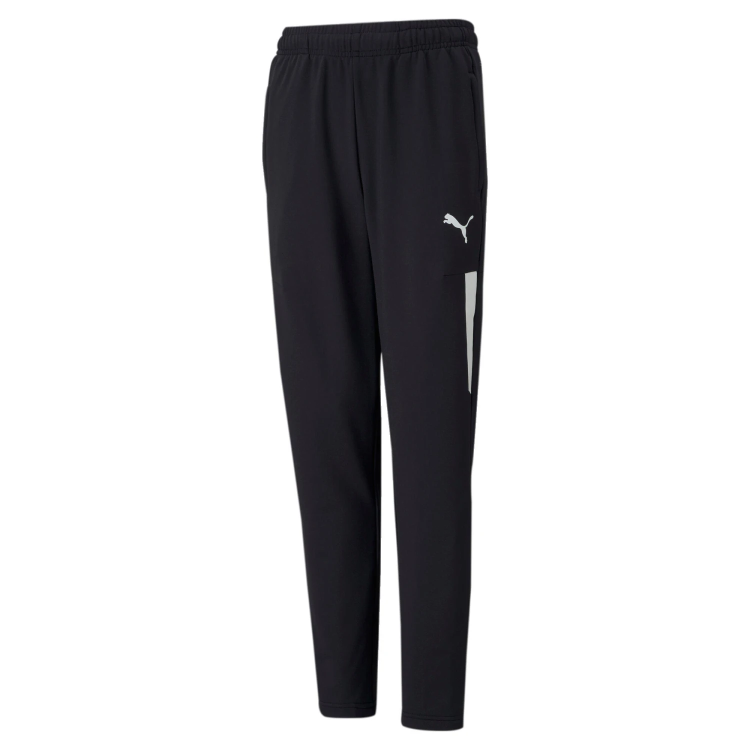 - Elasticated waistband – Side zip pocket – Zip bottoms for easy on/off over footwear – Transfer print PUMA Formstrip on side leg – Transfer print PUMA Cat Logo on left leg – Recycled polyester and elastane