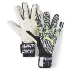 The Puma Ultra Ultimate Gloves from the new Dazzle pack have a pattern inspired by dazzle camouflage to ensure your game winning saves are hiding in plain sight. Limited Edition model in a stunning White/Lime Squeeze/PUMA Black colourway.