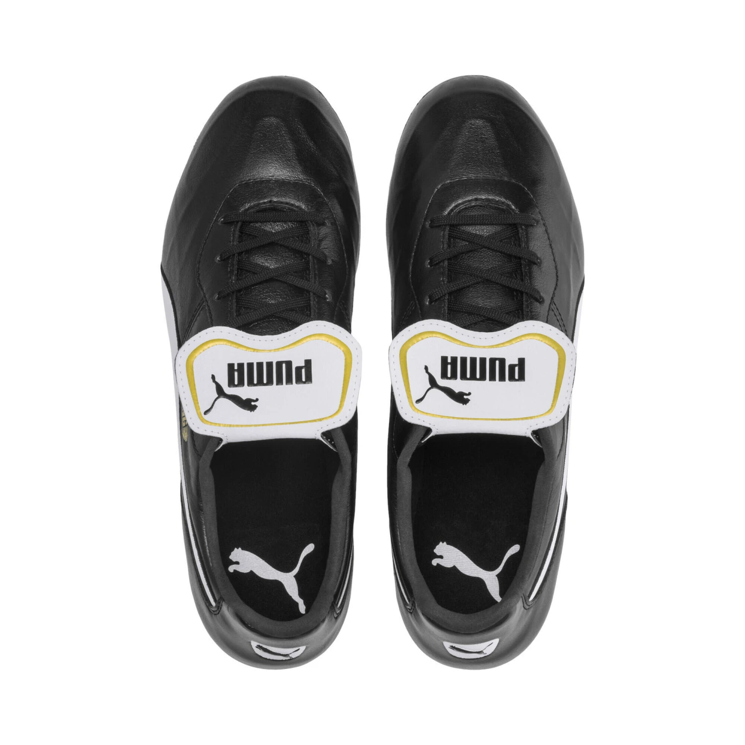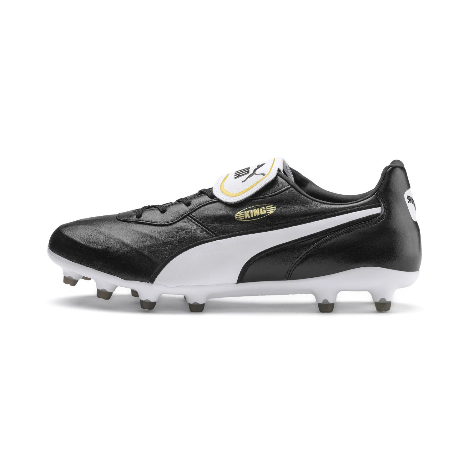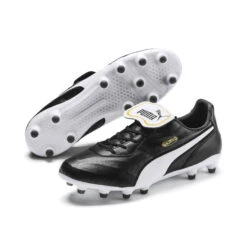 Football is king with these relaunch classic KING Top Football boots for firm ground. True to the original design, the KING Tops are decked out with state-of-the-art materials like K-leather vamps for the perfect ball control. The fold-over tongue with the PUMA No.1 Logo makes for a sleek and game-ready boot.